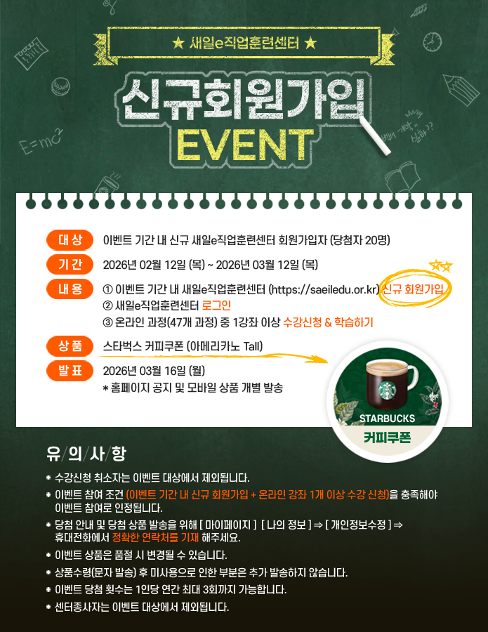 [종료]2026년 새일e직업훈련센터 회원가입 이벤트 (26.02.12~26.03.12)